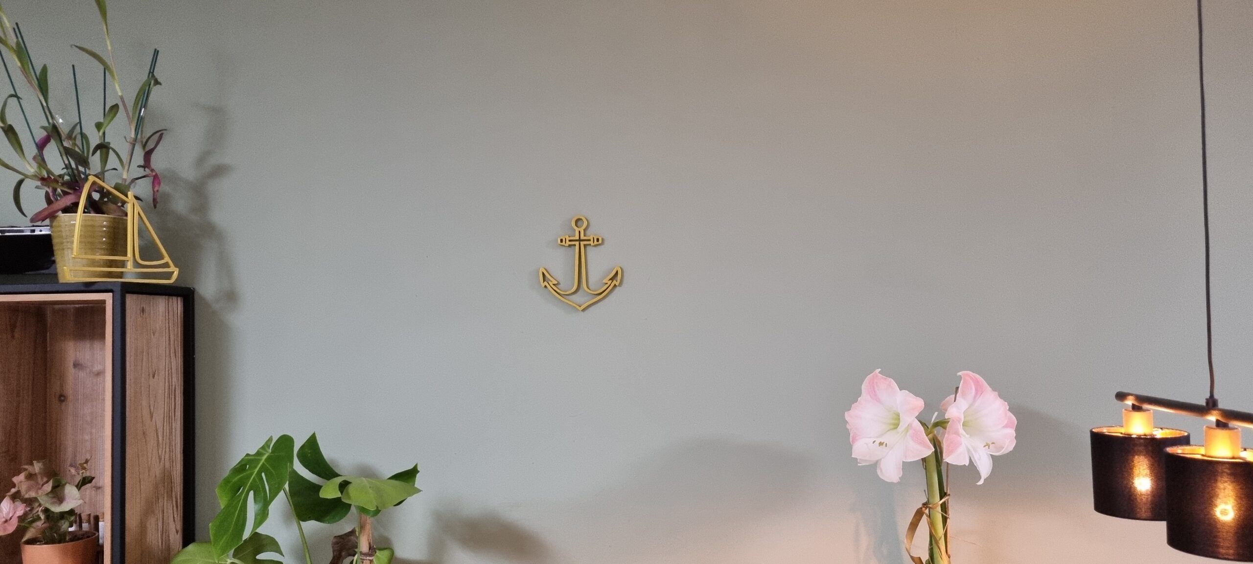 Bring the power of the ocean into your interior with this minimalist, gold anchor. This object is precision-designed in our own studio and manufactured using advanced 3D printing techniques. The use of high-quality Silk Gold The filament gives the anchor a deep, satiny sheen reminiscent of liquid gold. The clean lines and subtle facet edges create a beautiful interplay of light and shadow on any wall.