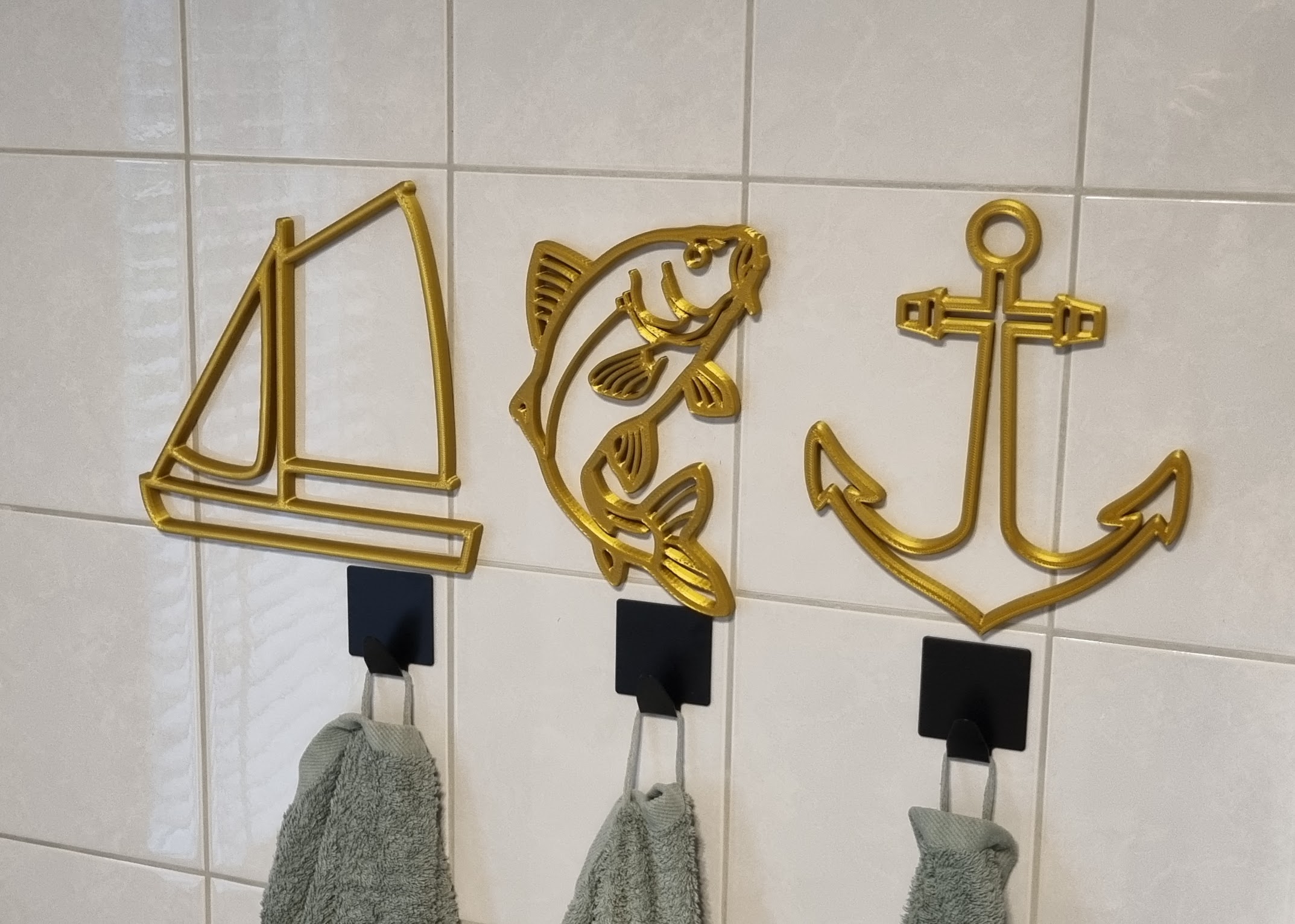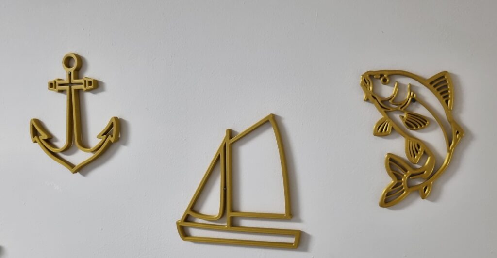 Just like our popular sailboat, anchor, and compass, this carp was designed entirely in our own workshop. By using high-quality Silk Gold Filament gives the fish a unique satiny sheen reminiscent of liquid gold. Its robust 9mm thickness creates a beautiful interplay of light and shadow, making the fish appear to stand out from the wall.